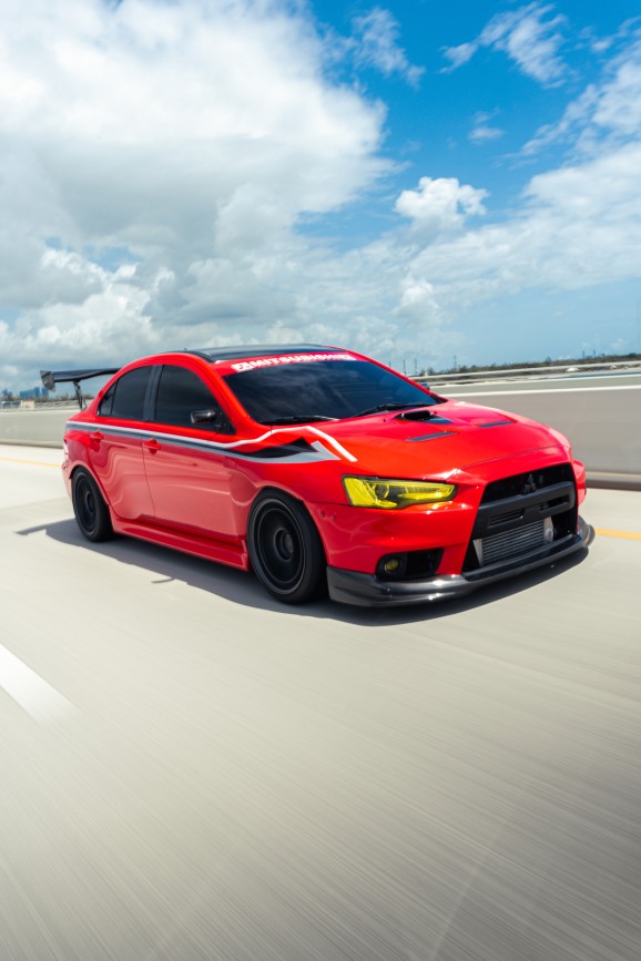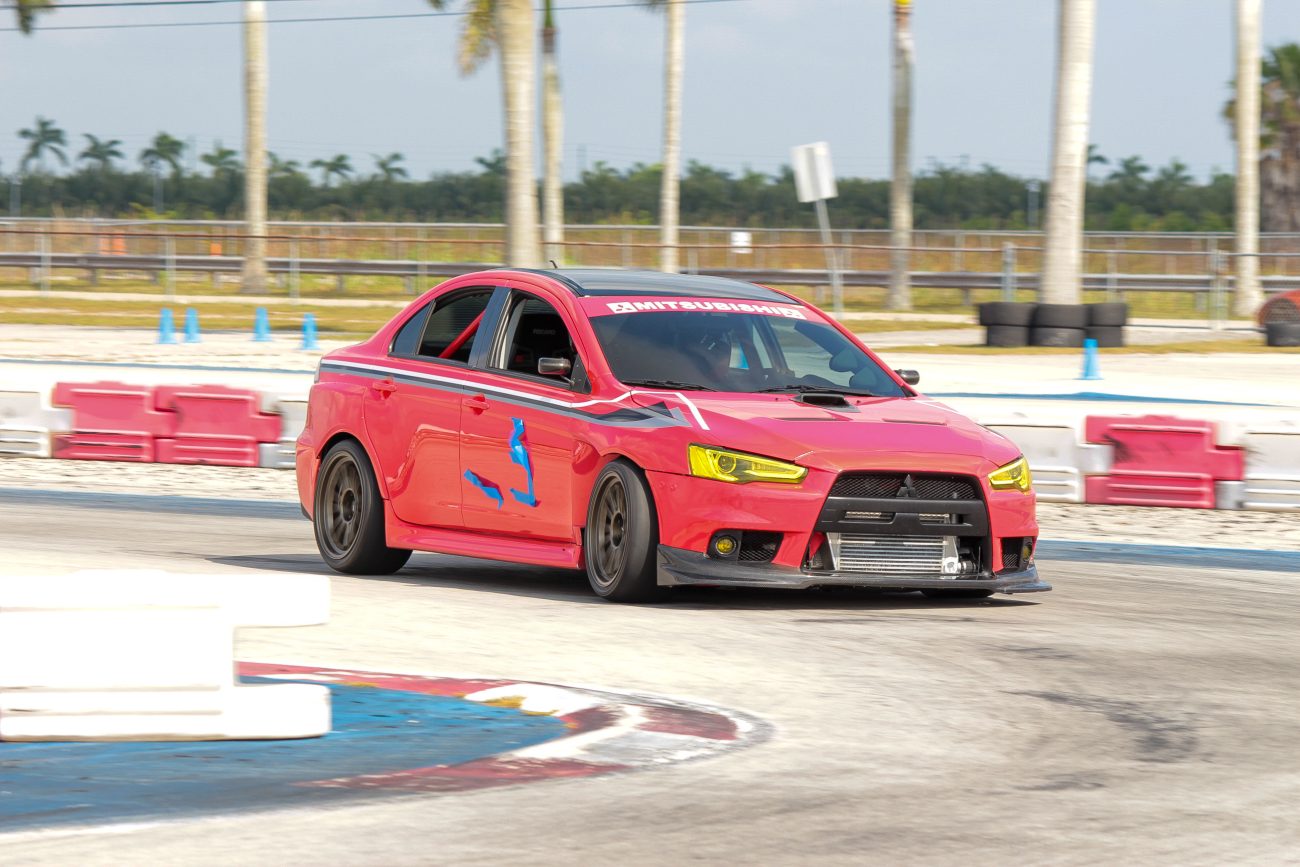 Outside of dodging South Florida potholes, and or now native species of iguana – Sethum has become an avid weekend Autocrosser. The red Evo X is a staple at AMR Motorsports during Street Racing Made Safe’s sorta bi-monthly events. With an engine putting out that much power and the course’s tight turns – the Evo would undoubtedly need help in staying connected to the pavement.