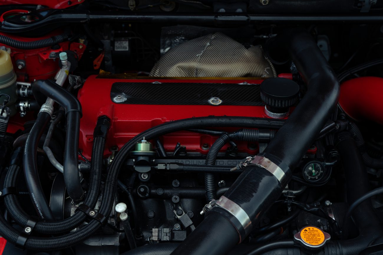 With a bevy of experience under his belt, Sethum took his blown-up 4B11T and began to massage it into what it is today. Tackling the engine’s failed bottom end he installed a fleet of strengthening pieces including CP pistons, Manley TT rods, ARP head studs, King race bearings, and a Fluiddamper crank pulley. For added protection under pressure, he also had Golden Eagle block sleeves and O-rings maneuvered into place – the only bit of work he didn’t perform himself.