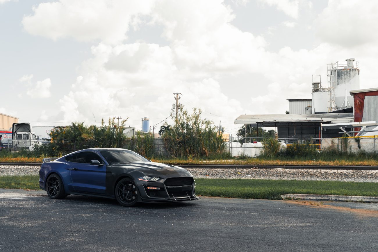 From the fenders forward, the car’s aesthetics are dominated by the presence of carbon fiber. In the place of the Mustangs stock fenders are a pair of GT350 Carbon Fiber pieces with a matching hood, supplied by Anderson Composites. Because we can’t just ball out unconscious 100% of the time – the 777 Performance GT500-style front bumper was wrapped by SNS Visuals in Hialeah, FL. No – he didn’t burn another two grand on a carbon fiber front bumper. I’m sure you’ll forgive him.